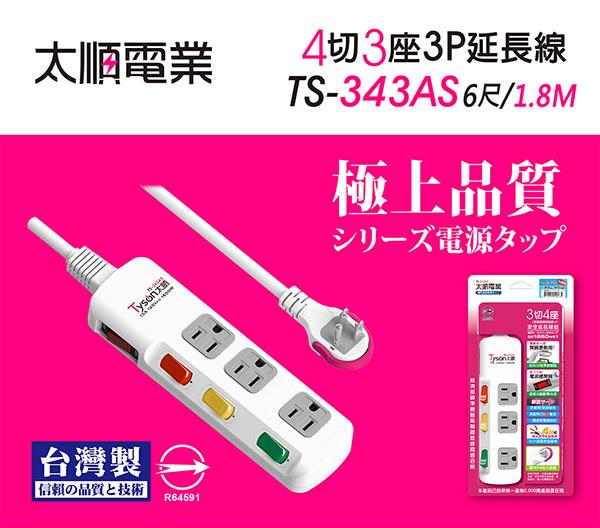 Tyson太順電業 TS-343AS 3孔4切3座延長線(拉環扁插)-1.8米