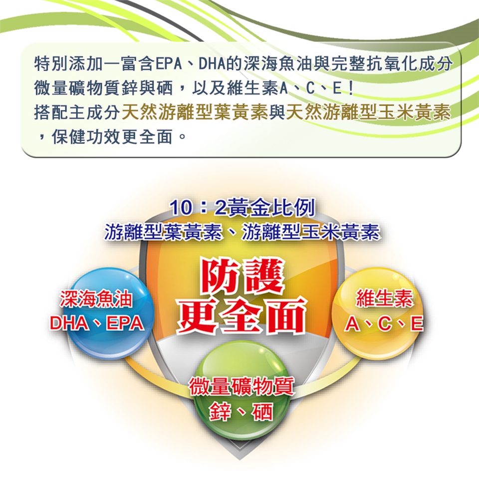 ☆新一代 配方大升級☆ 100%採用Kemin游離型專利葉黃素+玉米黃素