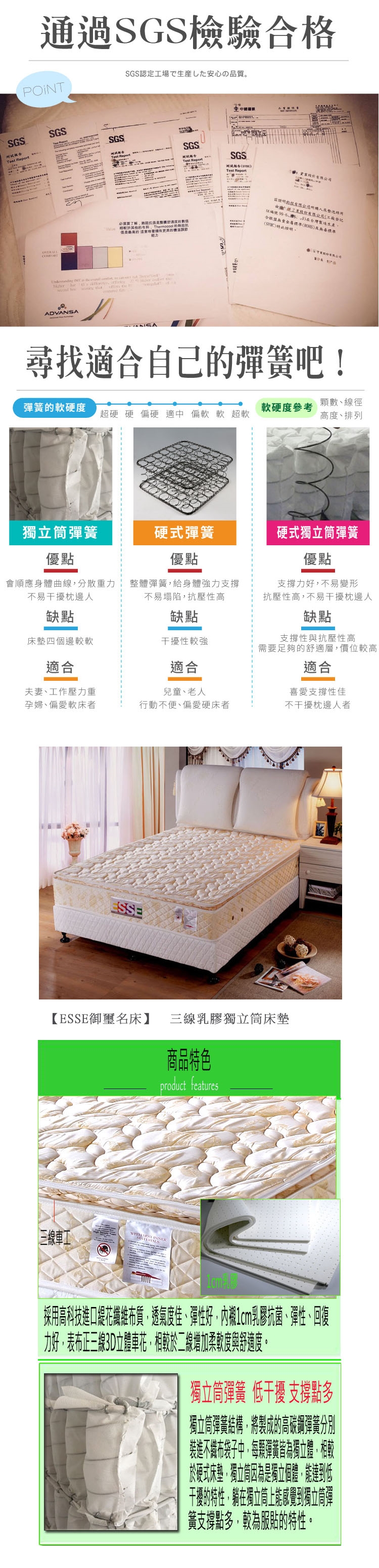 【ESSE御璽名床】高回彈乳膠三線獨立筒床墊5x6.2尺 -雙人