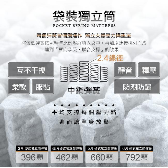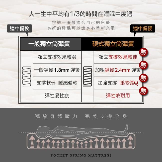 台灣製優質中鋼硬式獨立筒彈簧,完美支撐身體每個部位!
