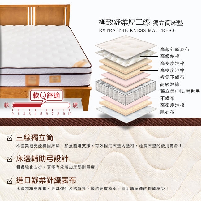 三線獨立筒,不僅美觀更能穩固床緣,有效固定床墊內墊材延長床墊的使用壽命!
