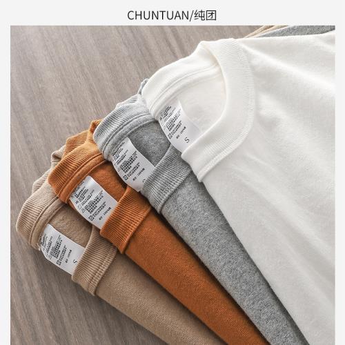 純團美式320g重磅短袖t恤男夏季純色白色純棉厚實三本針半袖男女