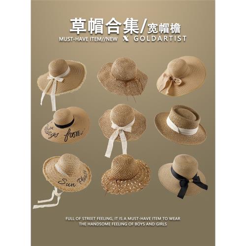 GOLDARTIST草帽女夏季沙灘帽大帽檐草編防曬遮陽帽防紫外線太陽帽