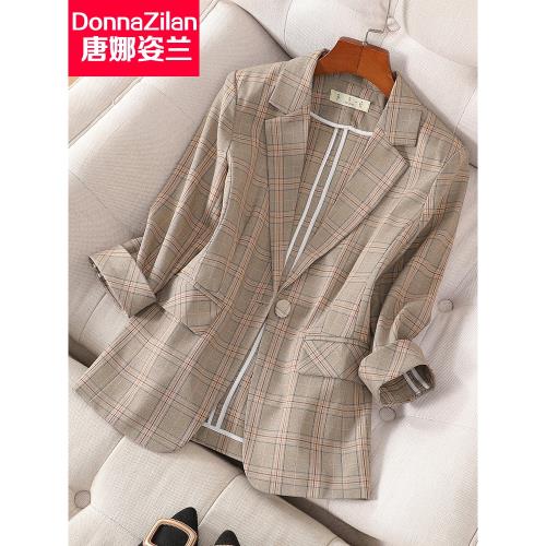格子小西裝外套女夏季薄款2024新款修身小個子英倫風休閑西服上衣