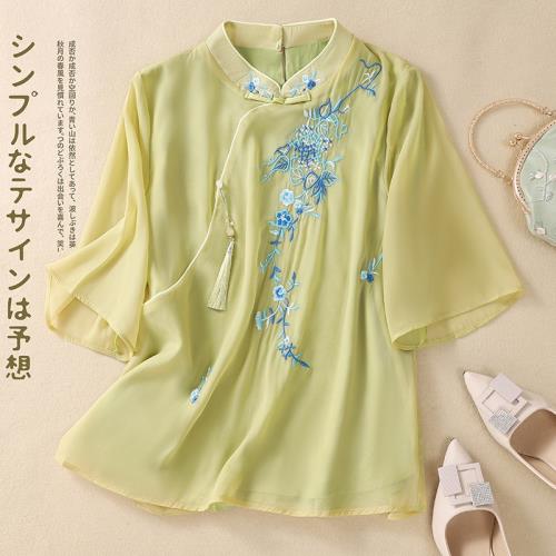 唐裝女中國風盤扣襯衫中式女裝夏裝禪意茶服改良漢服刺繡旗袍上衣