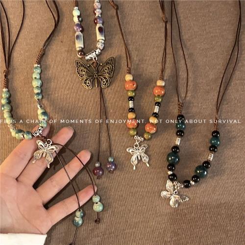新中式復古菩提民族風陶瓷蝴蝶鈴鐺吊墜項鏈女森系長款毛衣鏈飾品