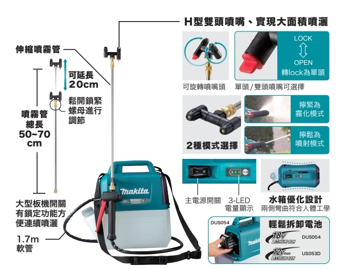 MAKITA牧田 DUS054Z 18V側背噴霧機(單主機 無電池 無充電器)