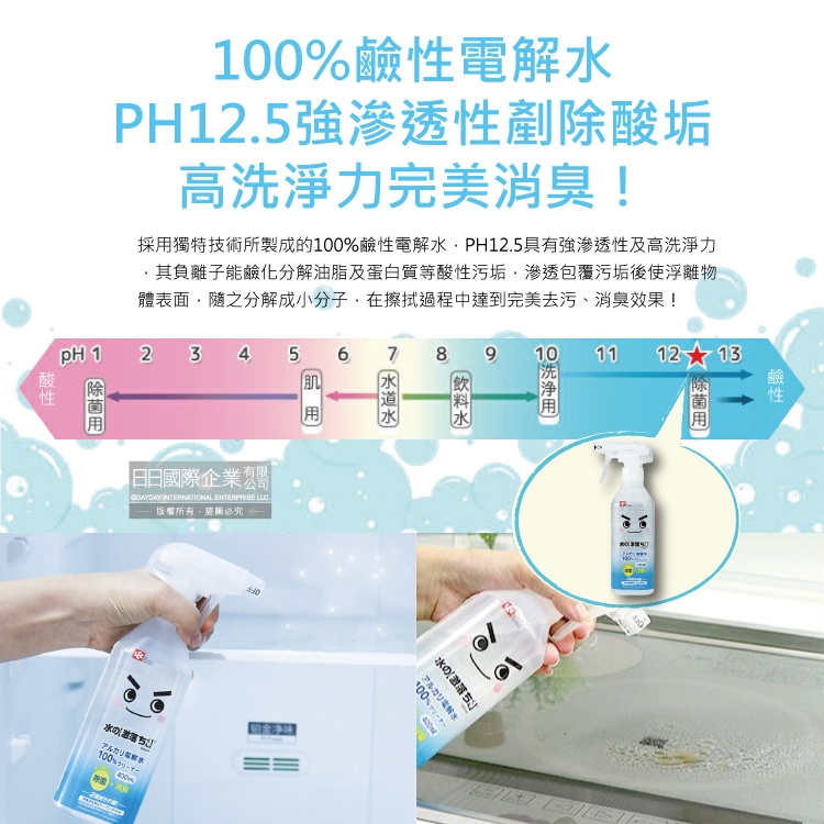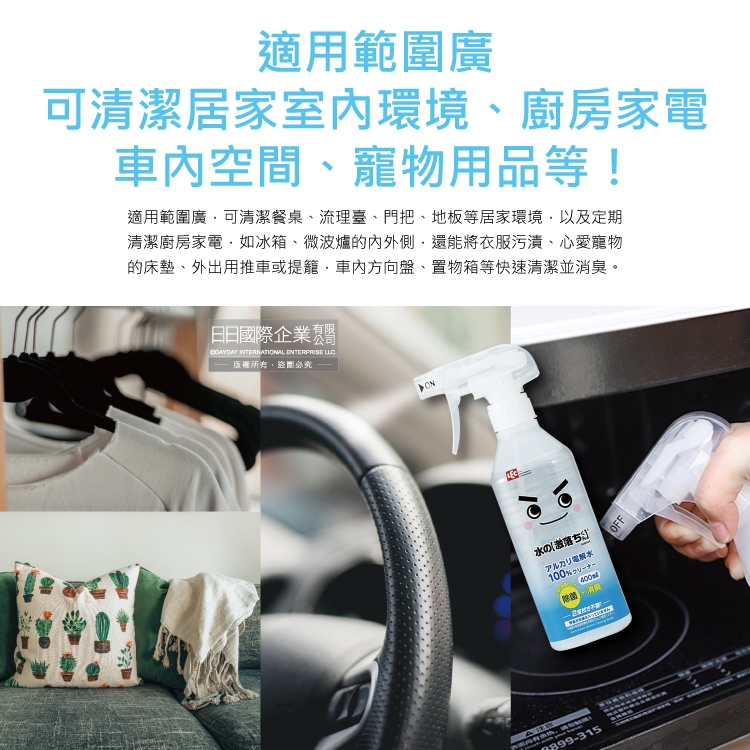 ●品名:萬用去污消臭100%鹼性電解水噴霧清潔劑