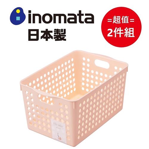 日本製【INOMATA】淡色系收納籃 淺粉 超值2件組