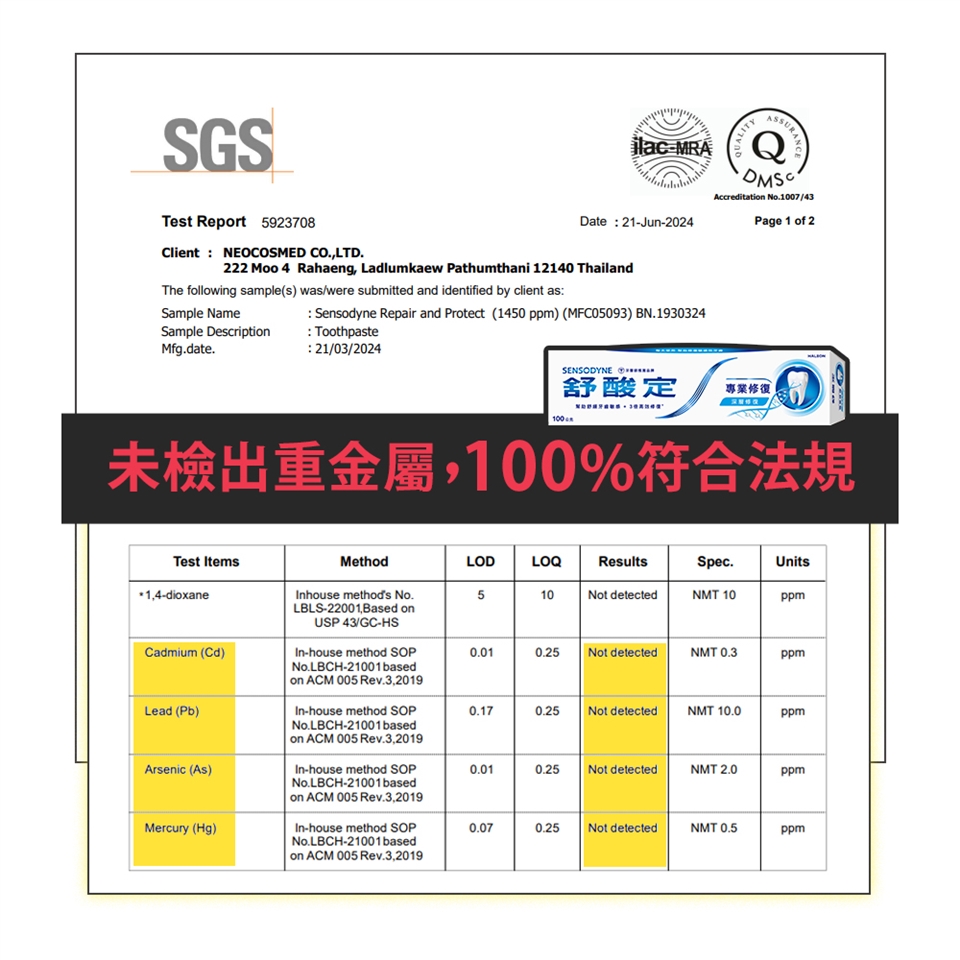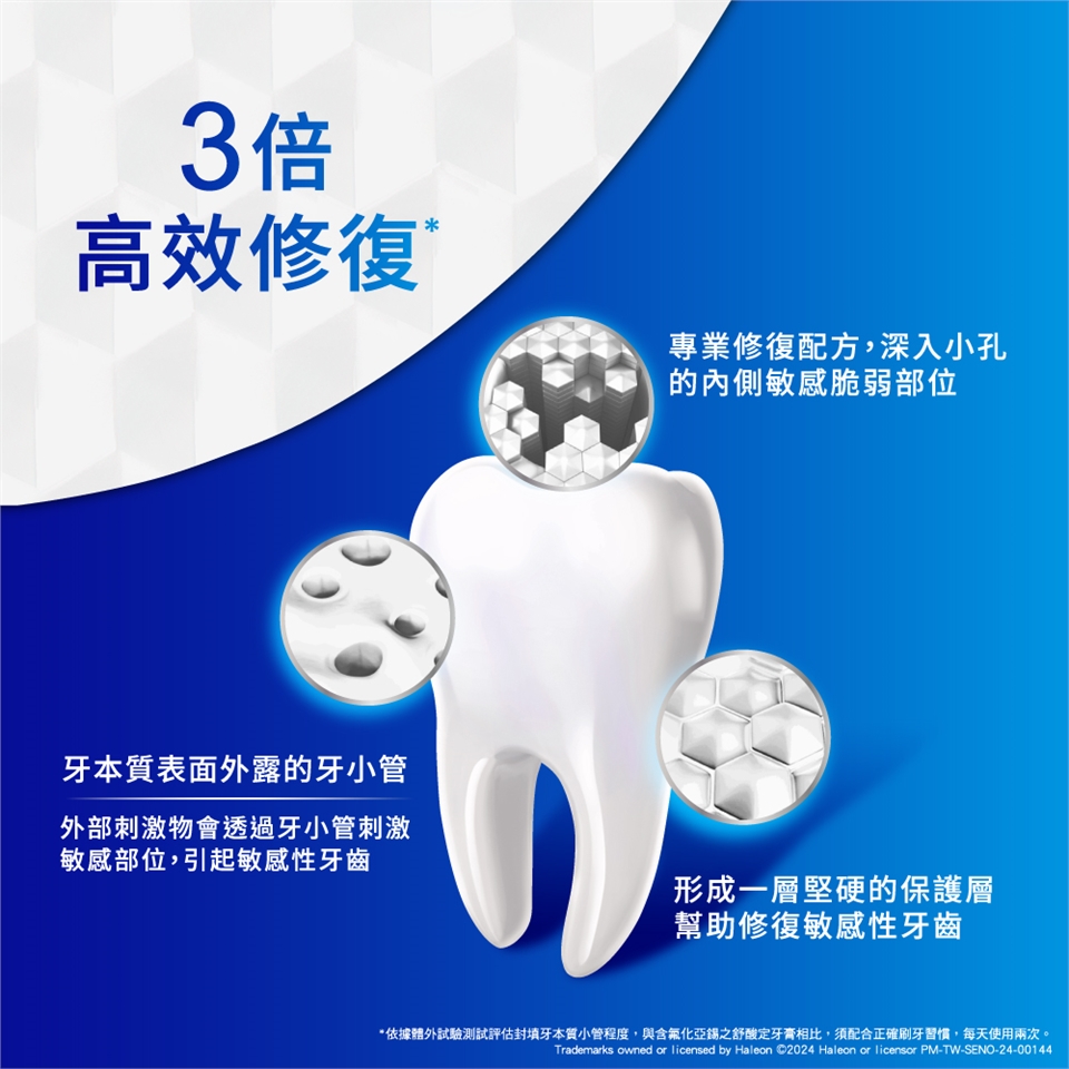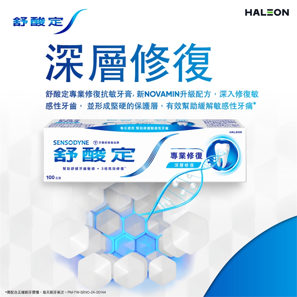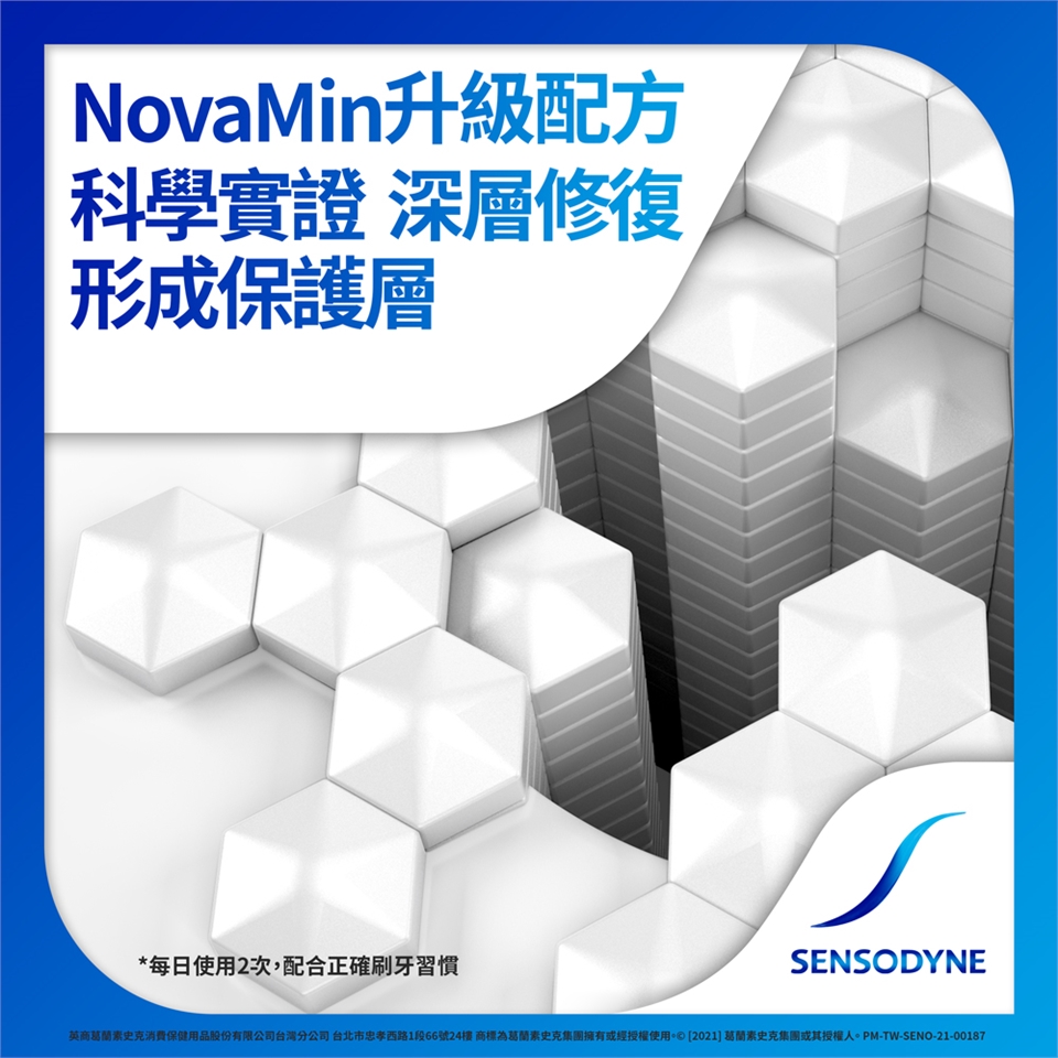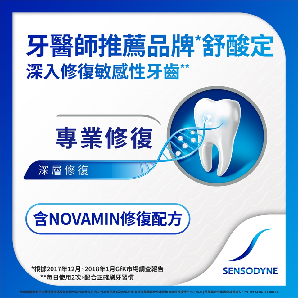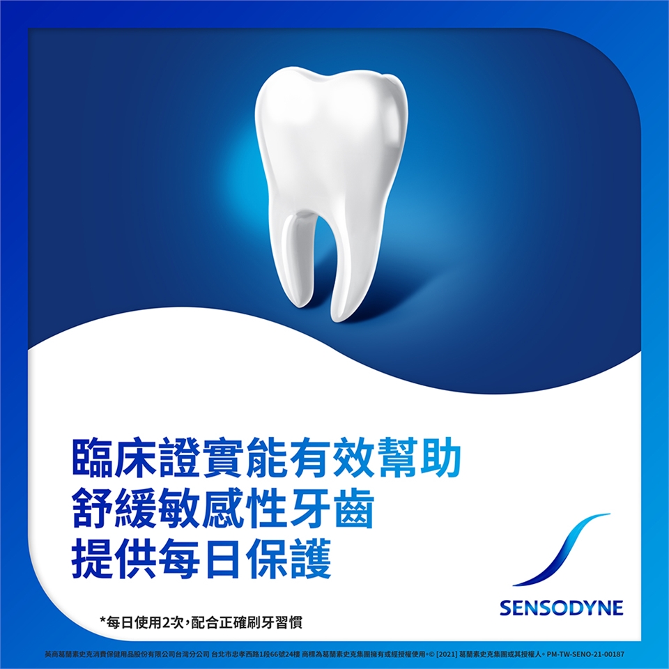 每天使用舒酸定2次,並搭配正確刷牙習慣,便可為牙齒提供每天24小時抗敏保護,及有效保持口腔潔淨。同時含氟配方更能強化琺瑯質,幫助預防蛀牙