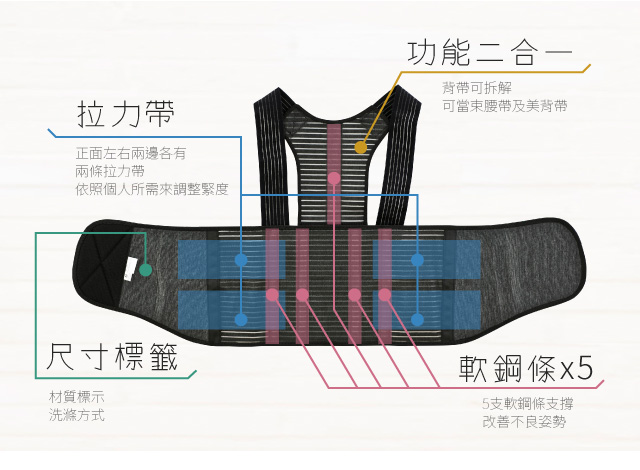 商品:【JS嚴選】竹炭可調式多功能調整型美背帶*1 入
