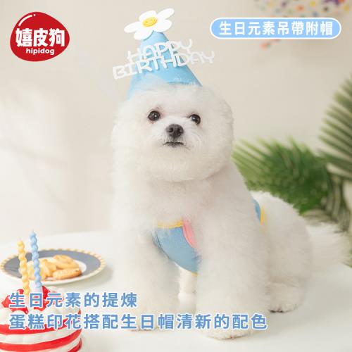 嬉皮狗 生日元素吊帶附帽 春夏款寵物服飾