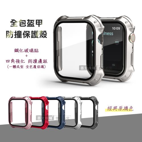 全包盔甲 Apple Watch Series 9/8/7 41mm 鋼化玻璃貼+防撞邊框 一體式保護錶殼