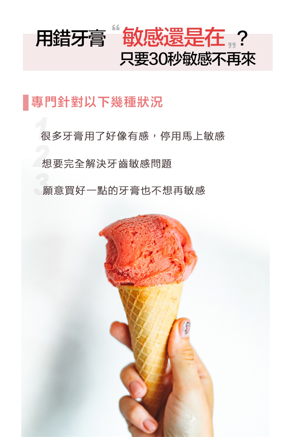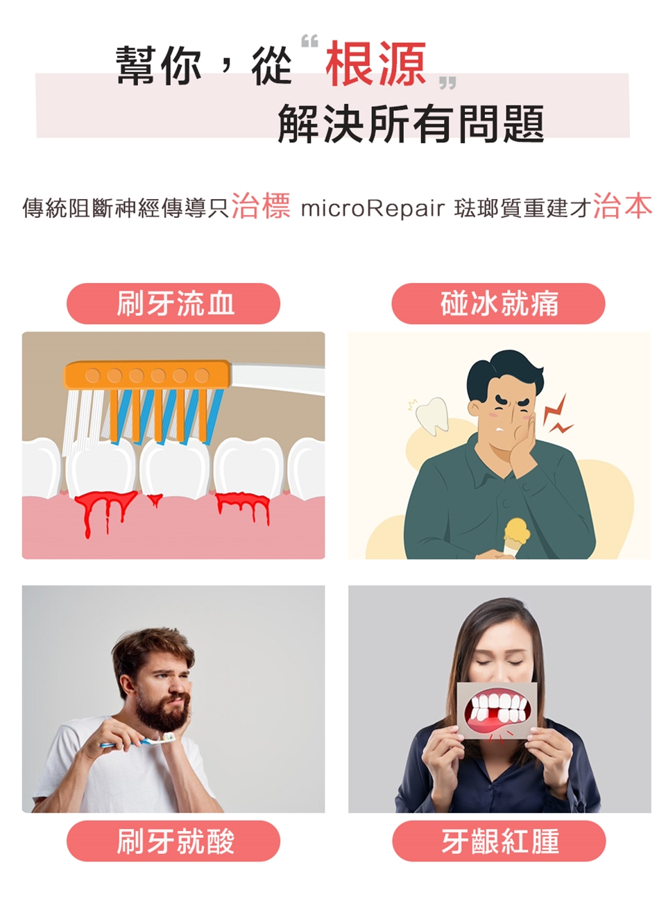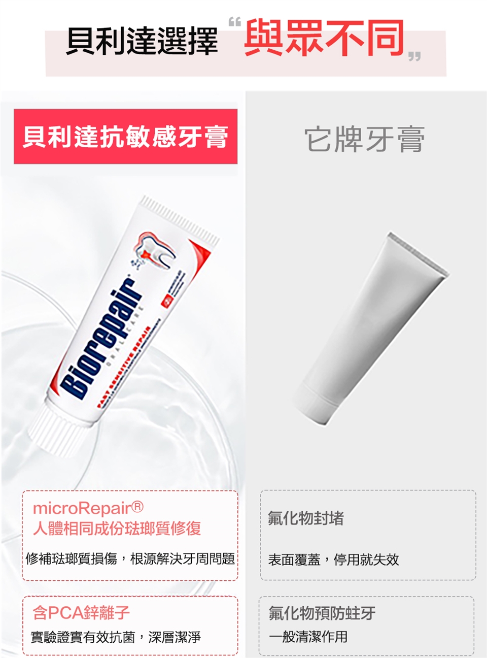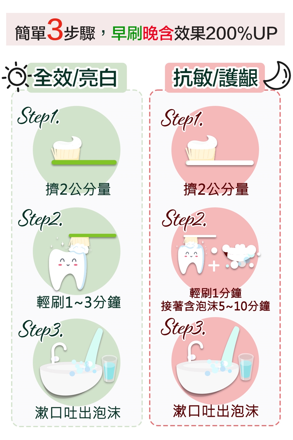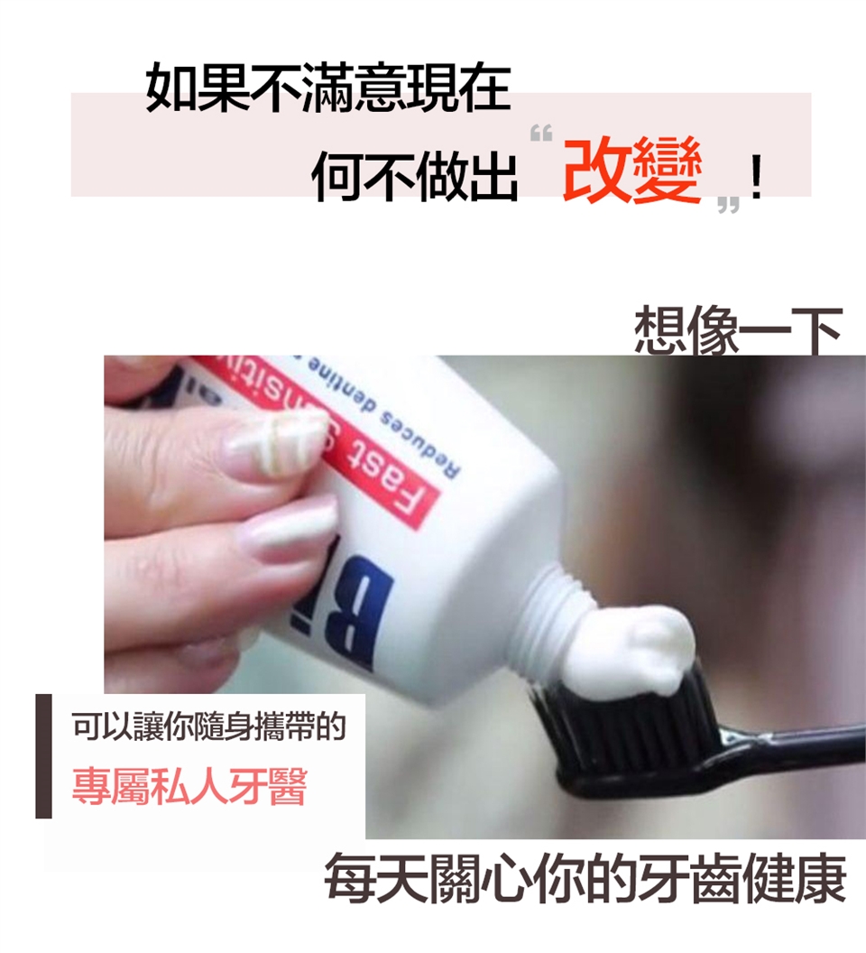 白天使用綠色[全效防護牙膏]刷,晚上使用紅色[抗敏感牙膏]刷,交替使用。