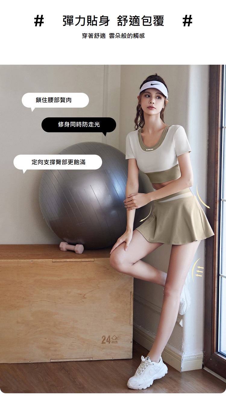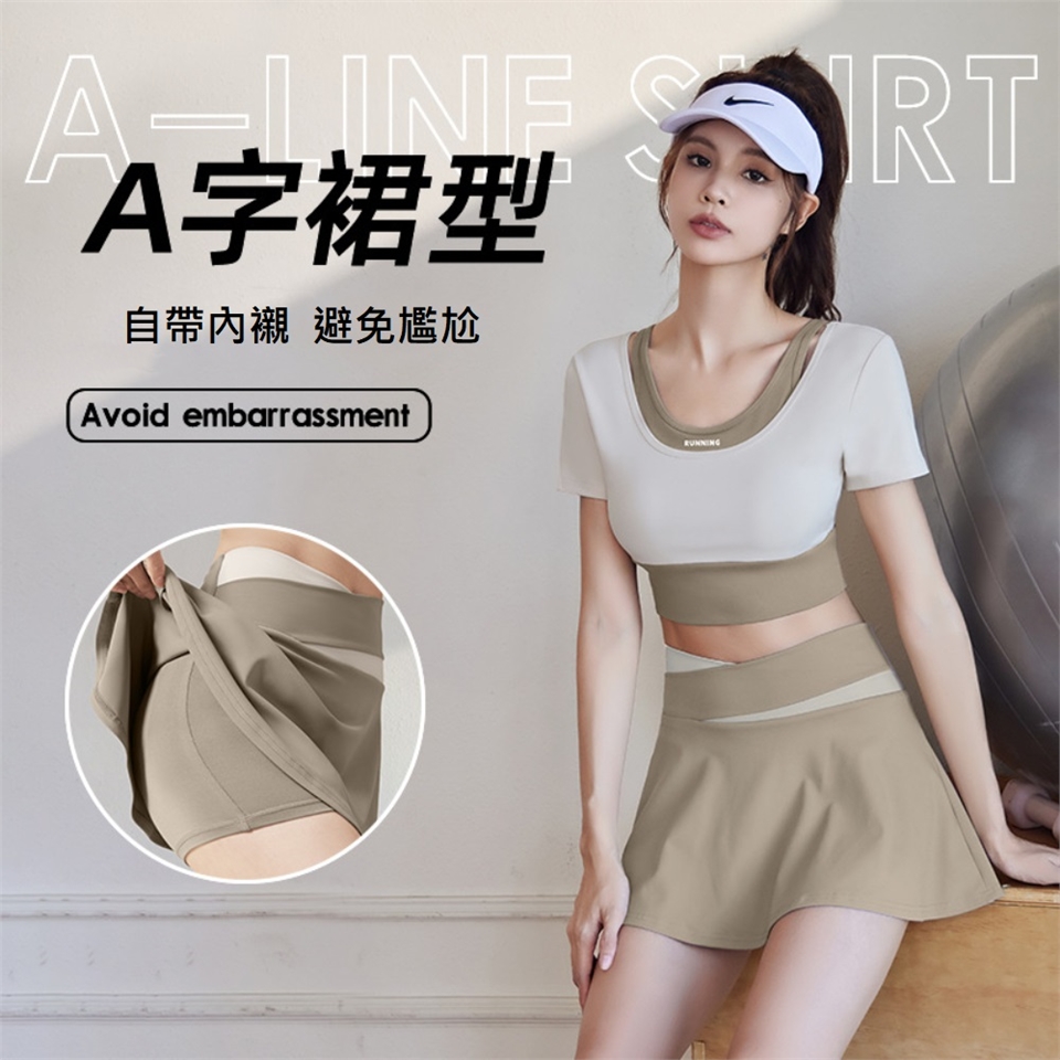 【A&R】顯瘦蜜桃拼色A字運動裙 四色任選