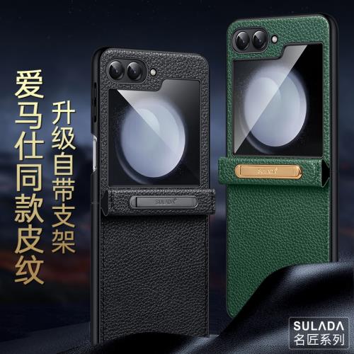 適用三星zflip5手機殼真皮新款超薄zflip4折疊屏支架Galaxyzflip3保護套牛皮全包防摔Samsung外殼高檔男女士