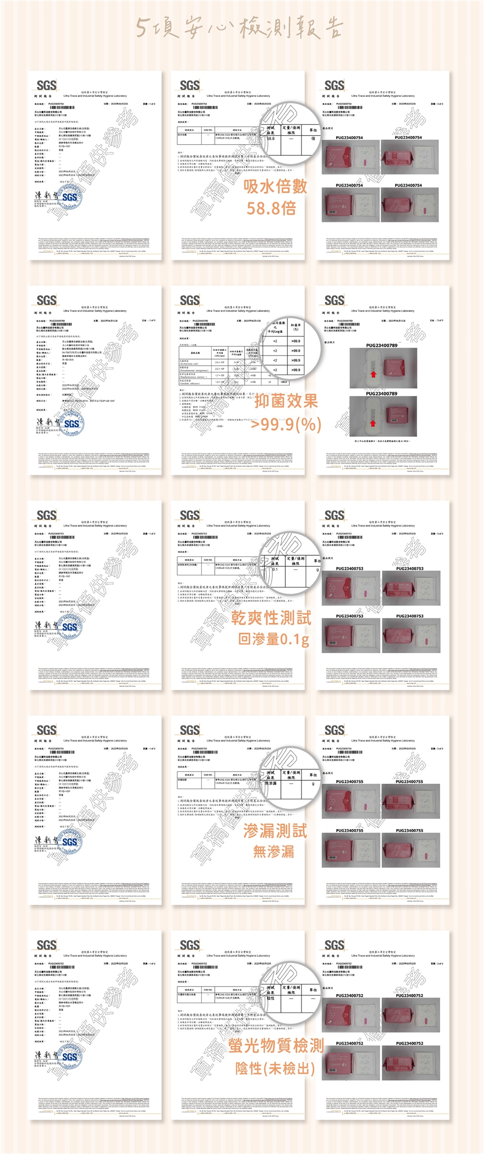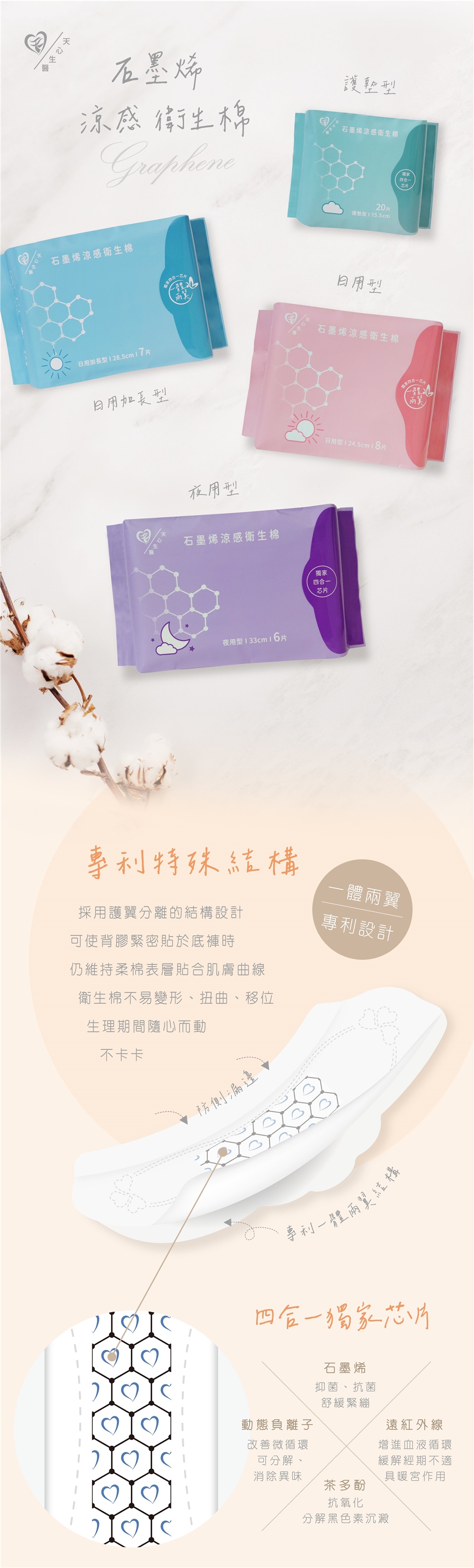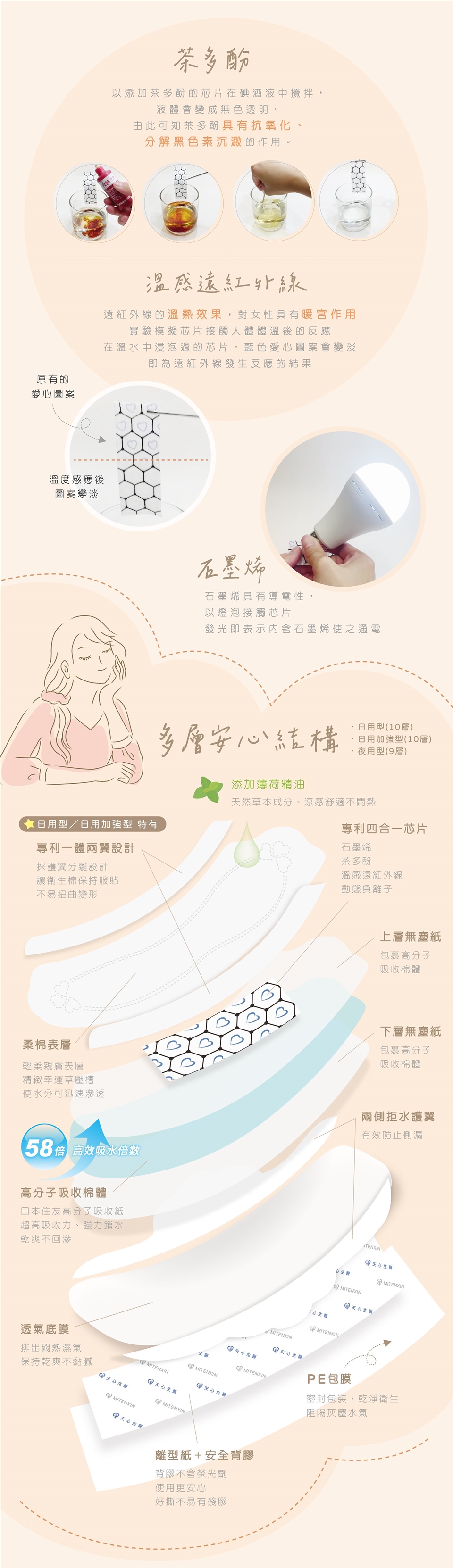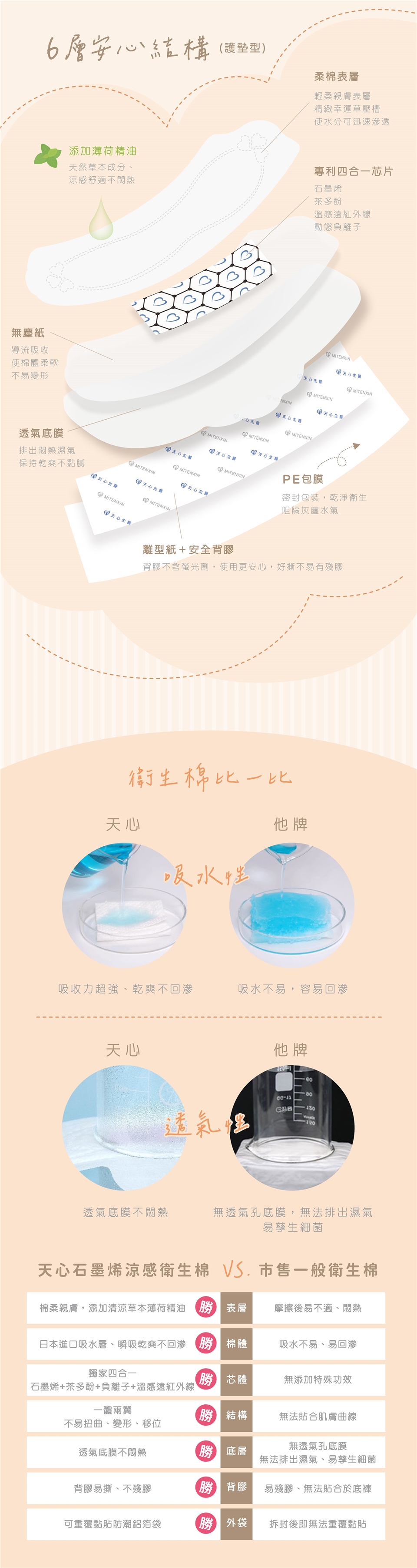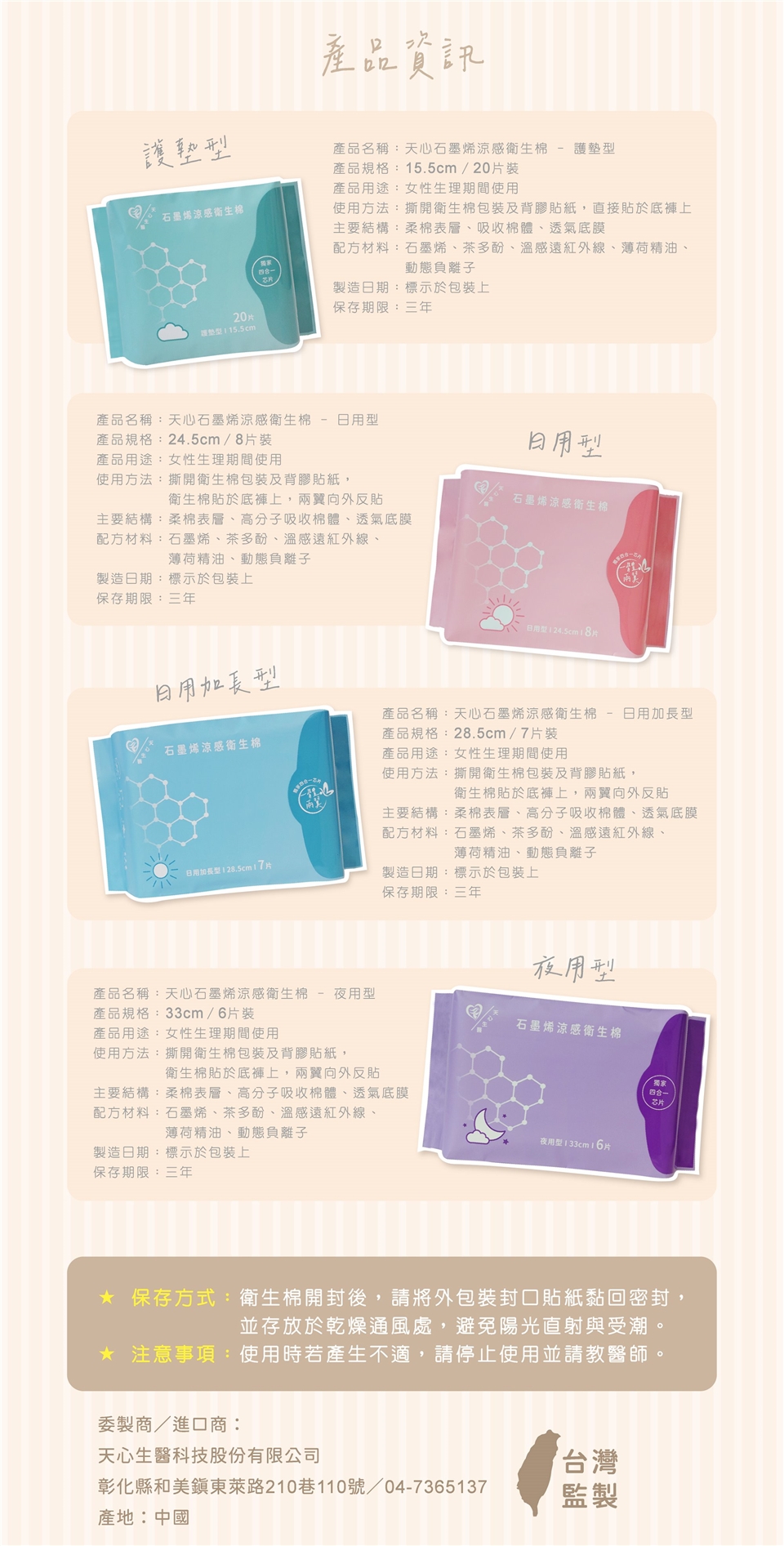主要材料:柔綿表層、高分子吸水聚合物、透氣底膜