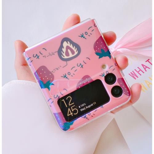 日韓可愛適用三星zflip4手機殼折疊屏Galaxy Z Flip4保護殼防摔全包夏日時尚創意小草莓zflip3輕薄新款23flip