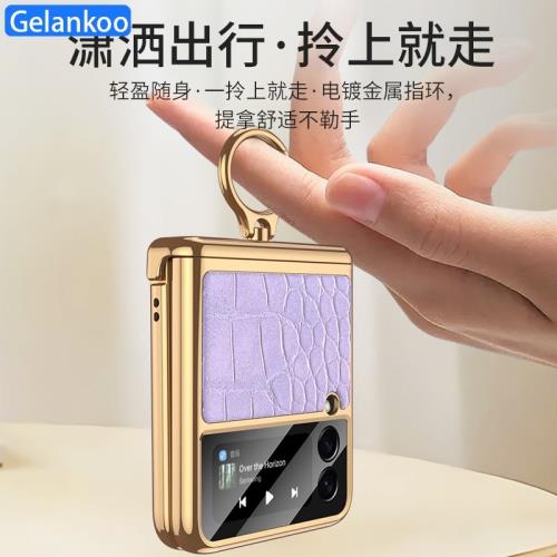 高檔鱷魚皮紋適用三星zflip3手機殼flip3折疊z flip4折疊屏5g潮Galaxy女生網紅高級感全包sm-f7110奢華歐美風