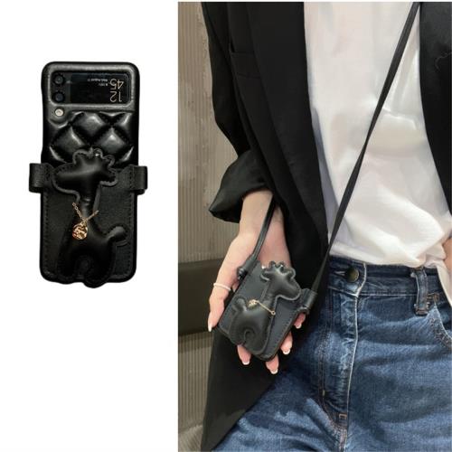 可愛黑小鹿卡包適用三星Zflip4手機殼斜挎款折疊屏W23flip女款皮Zflip3個性保護殼SM-F7110網紅同款四代新潮