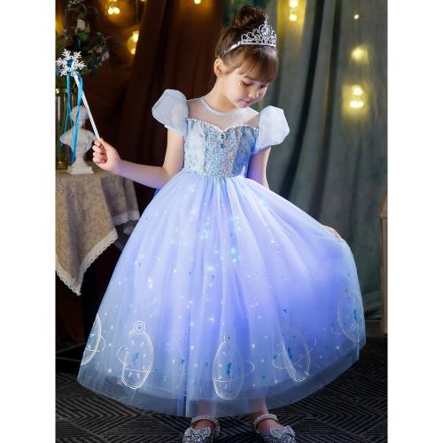 發光愛莎公主裙女童新款夏季短袖生日禮服高端冰雪奇緣艾莎連衣裙