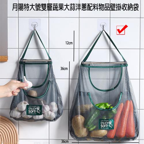 月陽送無痕掛勾特大號雙層蔬果大蒜洋蔥配料物品壁掛收納袋置物袋網兜(FV3636)