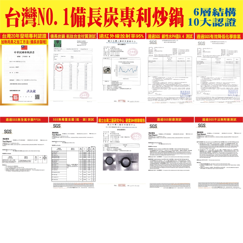 • 材質:備長炭遠紅外線元素多層複合金強化處理、    航鈦合金、不銹鋼強化玻璃鍋蓋