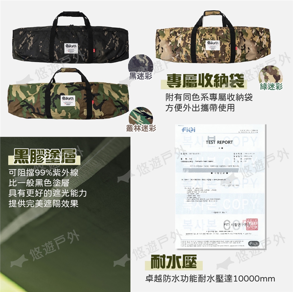 【悠遊戶外】the earth 黑膠方型天幕550x440cm