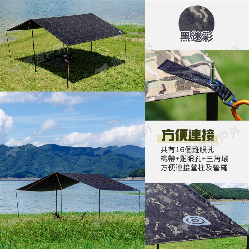 ☀天幕上帶有織帶、雞眼孔、三角環(不含D扣)方便連接營柱、營繩