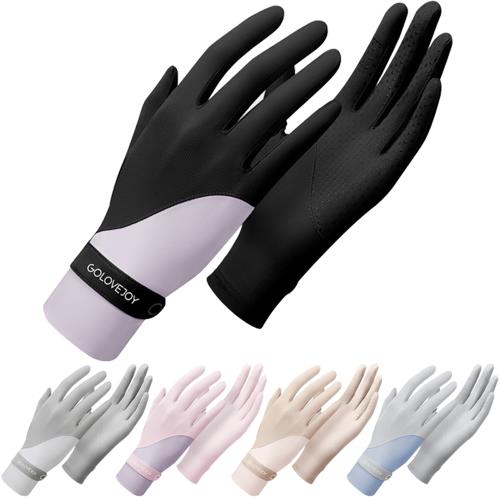 剪裁顯瘦撞色設計!! GOLOV.EJOY 涼感冰絲 指尖開口 親膚透氣舒適 防曬手套