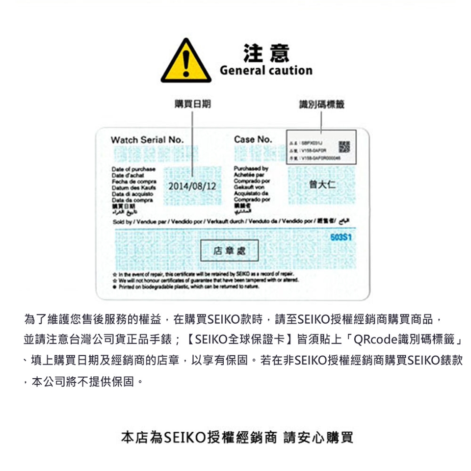 - 任何人為自行拆開手錶,在水中調節手錶功能,或是因未將錶冠退回標準位置導至內部構造受潮引起的損壞,皆不在保固內。