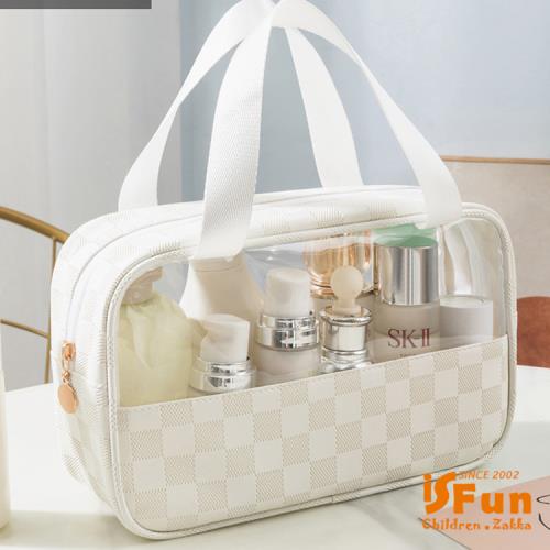 iSFun高雅格紋 PVC半透視手提防水化妝包 中號
