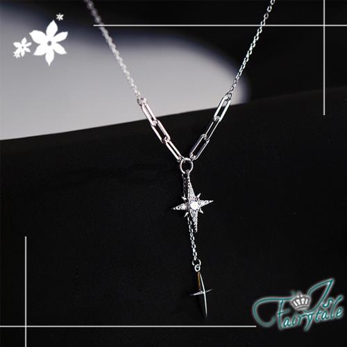 【伊飾童話】十字架雙墜*流蘇晶鑽鎖骨短頸項鍊/銀