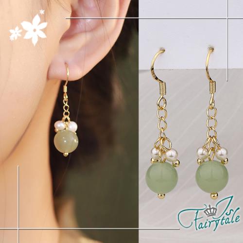 【伊飾童話】麥穗珍珠*和田玉垂墜耳環/金