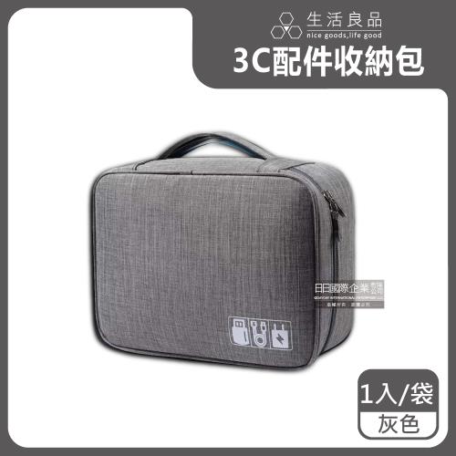 生活良品-韓版3C配件耐磨防潑水耐碰撞大容量多功能可調式分隔收納包1入/袋-灰色(耐衝擊彈性隔層分類旅行拉鍊包)