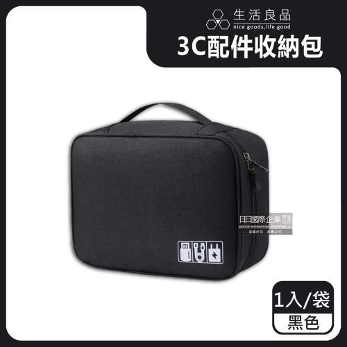 生活良品-韓版3C配件耐磨防潑水耐碰撞大容量多功能可調式分隔收納包1入/袋-黑色(耐衝擊彈性隔層分類旅行拉鍊包)