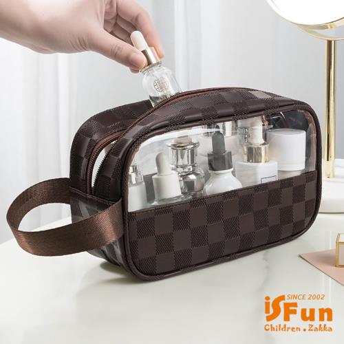 iSFun高雅格紋 PVC半透視手提防水化妝包 小號