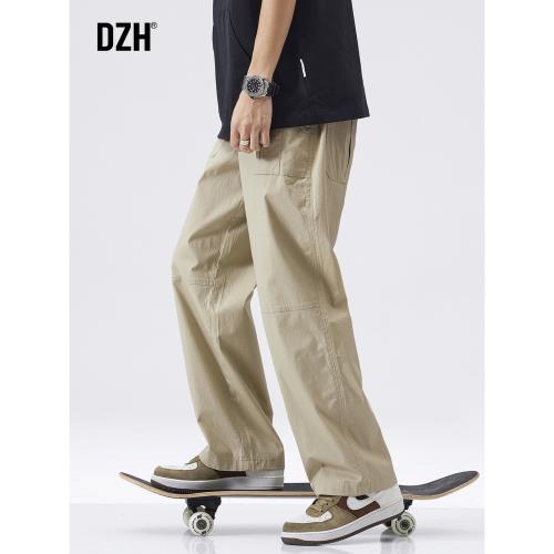 男士直筒褲卡其色工裝褲男褲新款加絨長褲子男冬季加厚大碼休閑褲