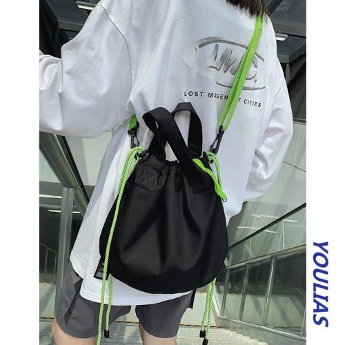 抽繩斜挎包小眾設計感小包潮牌尼龍布原宿學生撞色單肩包女大容量