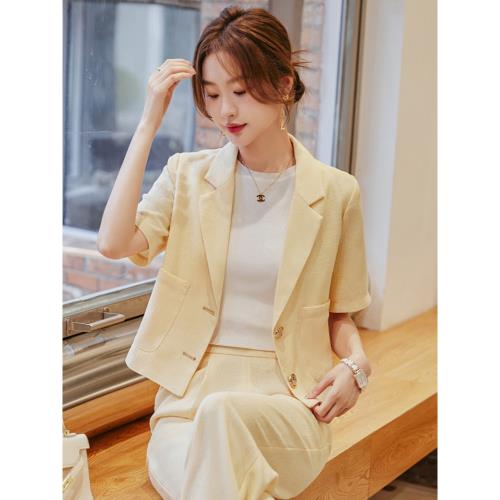 黃色西裝外套女夏短袖薄款2025新款高級感小個子短款女士休閑西服