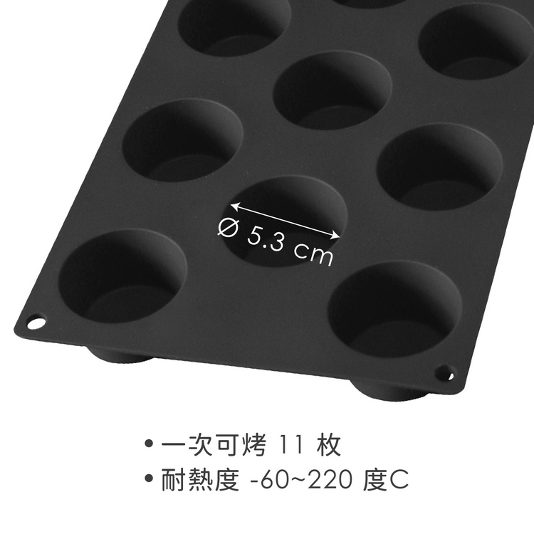 本商品一件入(一次可烤 11 枚)、單格容量 50ml;耐熱度 -60~220 度C (請遠離直接火源),適用微波爐、烤箱、冰箱、洗碗機。悠閒的下午就來做點心吧,看著熱騰騰的點心、蛋糕,巧克力等出爐,心情都好起來了。傳統的平盤式 11 烤杯設計,可一次烘培多個瑪芬蛋糕,再加入蘋果、藍莓、椰子等不同乾果,輕鬆享受美好的午茶時光。好脫模的矽膠材質,讓您烤後方便快速享用,絕不沾黏破壞形狀(幕斯類請成型後再脫模)。全系列由高密度且品質穩定的白金矽膠製成(BPA Free);請勿在白金矽膠上使用尖銳器具,如刀叉等。