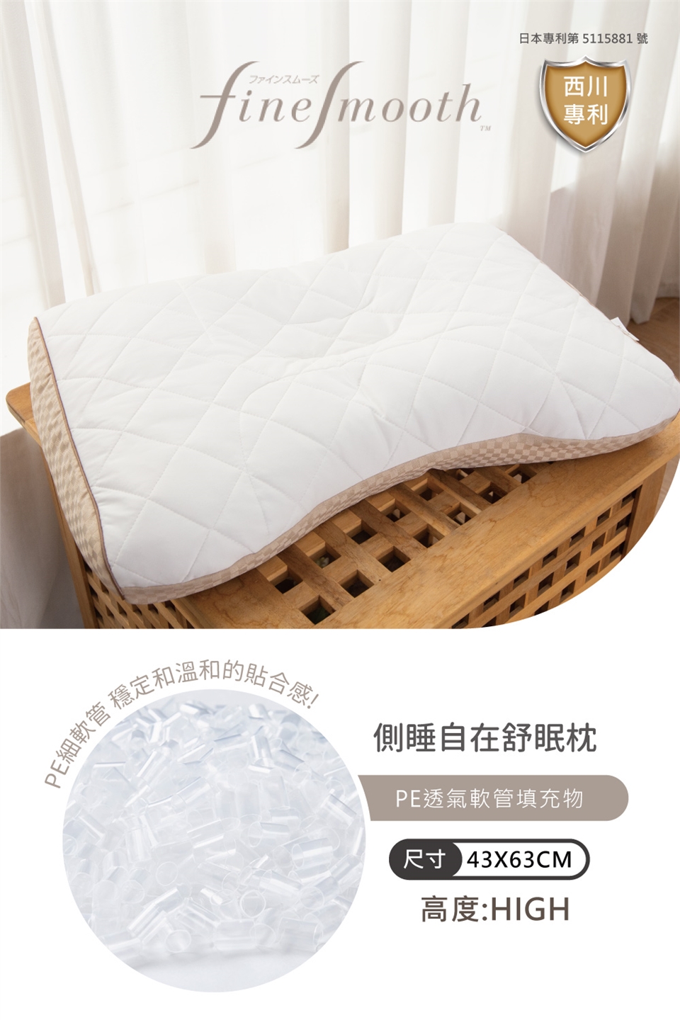 - 來自日本睡眠專家【西川 Nishikawa】的「側睡自在舒眠枕(High)」,以高支撐PE管狀內材打造穩定支撐感,特別適合側睡與肩寬族群。枕頭兩側加高、中央微凹的設計能自然貼合頸肩曲線,減少壓迫並保持呼吸順暢;附可拆式高度調節墊,可依需求自由微調,打造最合適的睡眠角度。全枕可水洗、透氣快乾,乾淨又衛生,讓您夜夜都能穩穩入睡。