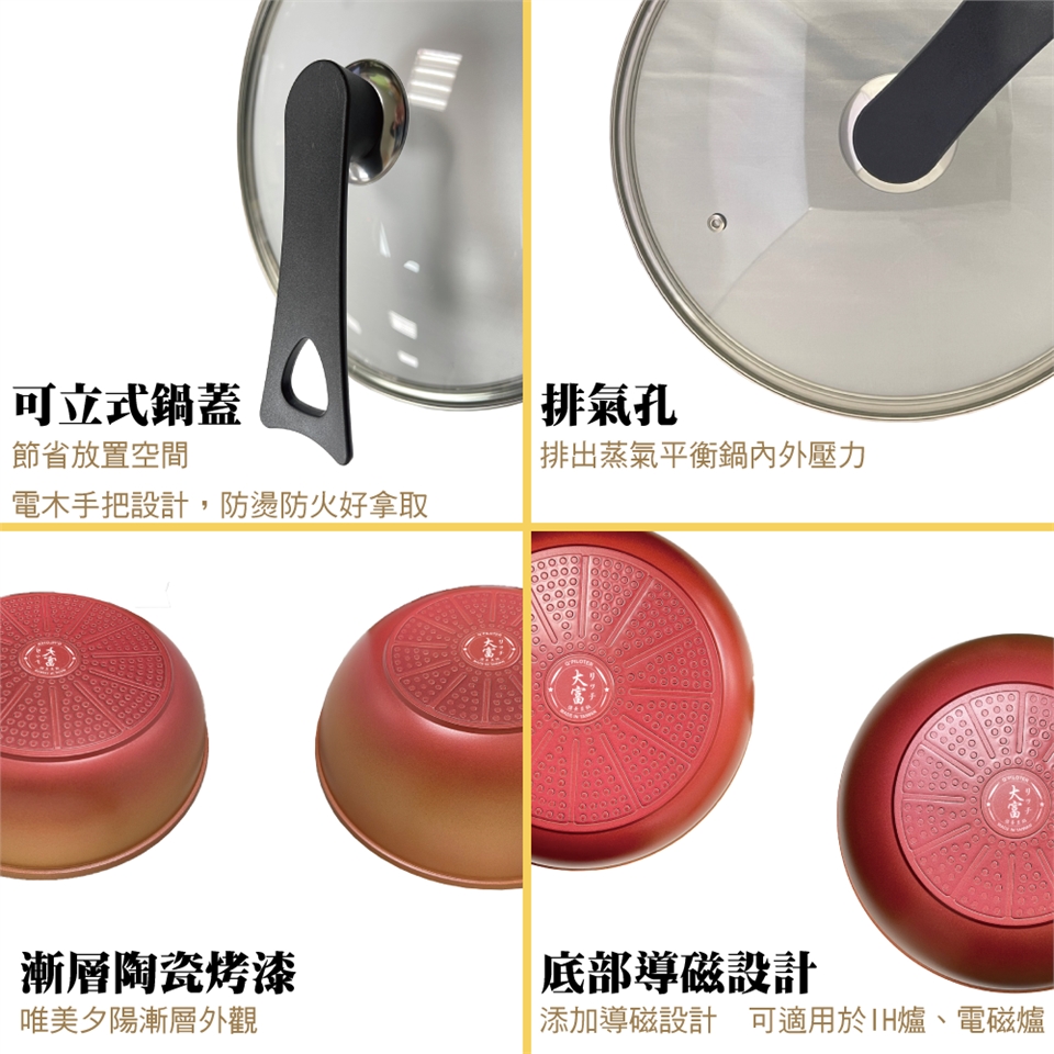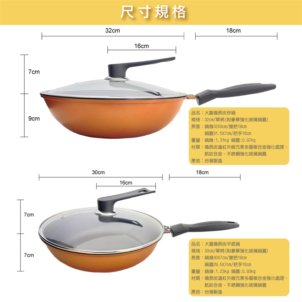 • 品名:大富 備長炭 32公分炒鍋 (附豪華強化玻璃鍋蓋)