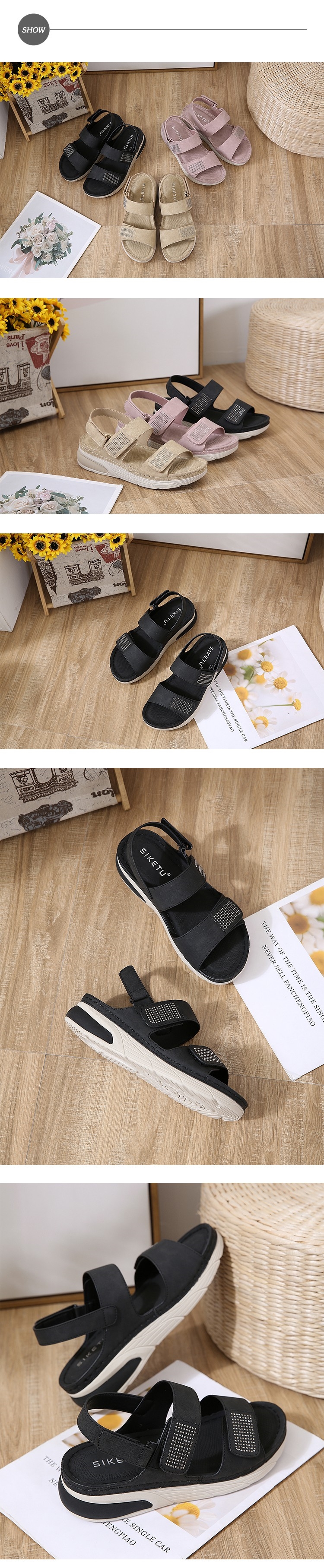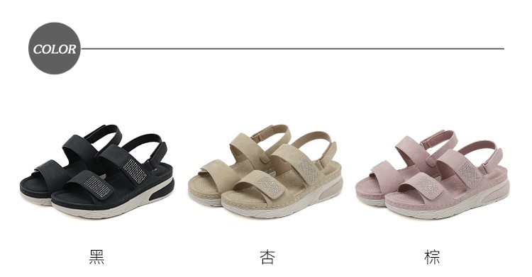【NO SUB】涼鞋 厚底涼鞋/時尚燙鑽舒適輕量魔鬼粘設計厚底運動涼鞋 黑