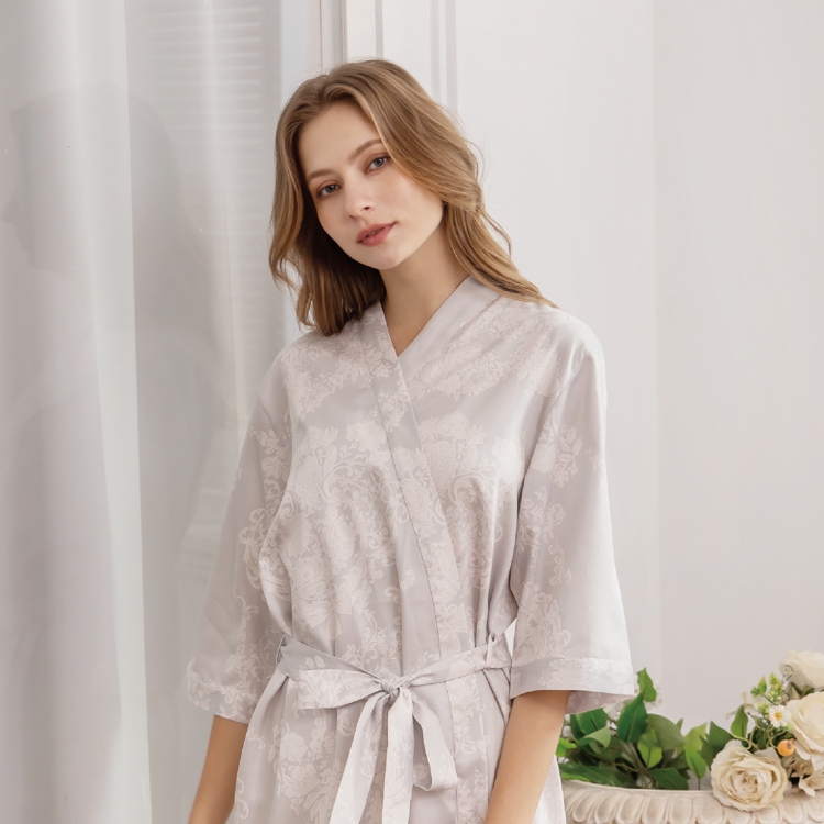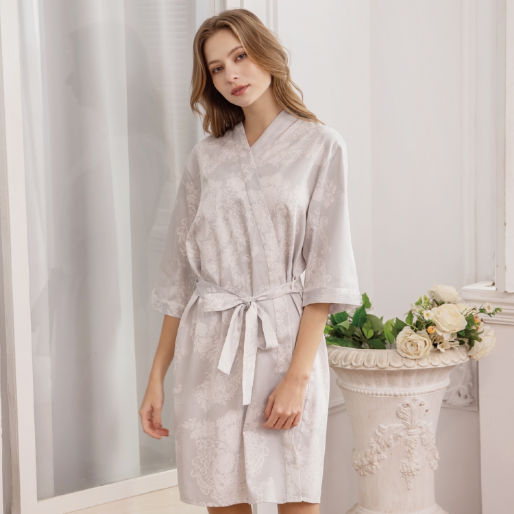 Rosemaid 羅絲美 - 故事圖騰100%純棉綁帶式六分袖睡袍