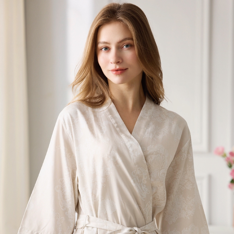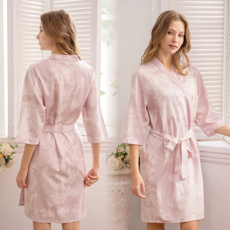 100%純棉綁帶式六分袖睡袍