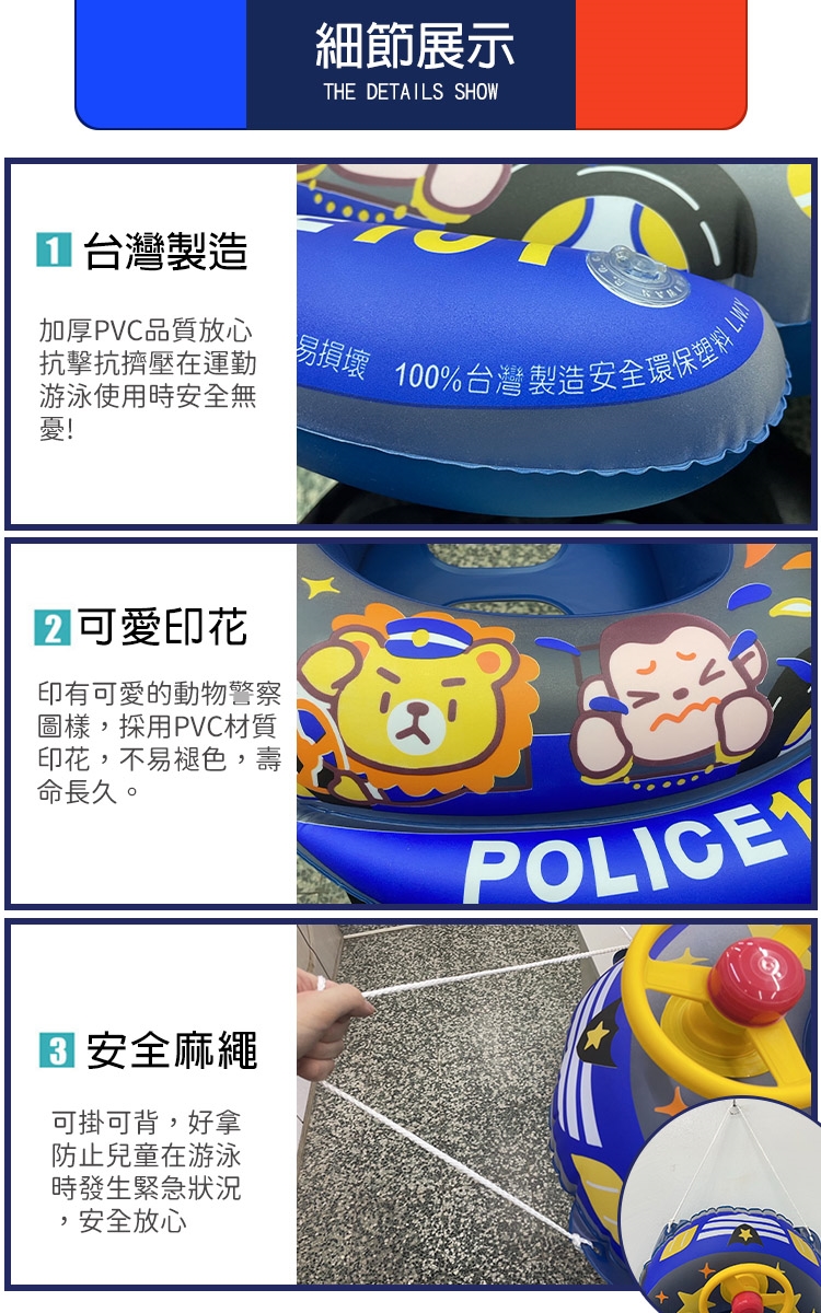 【WEKO】29吋兒童警車座圈(兒童座圈 兒童座船 附拉繩 坐圈 游泳座圈 兒童造型泳圈/WE-2901)