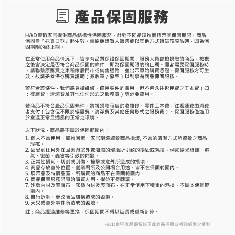 『紙箱、防塵塑膠袋和相關配件等...』完整,訂製款商品請依商品頁面退換貨辦法說明為主。