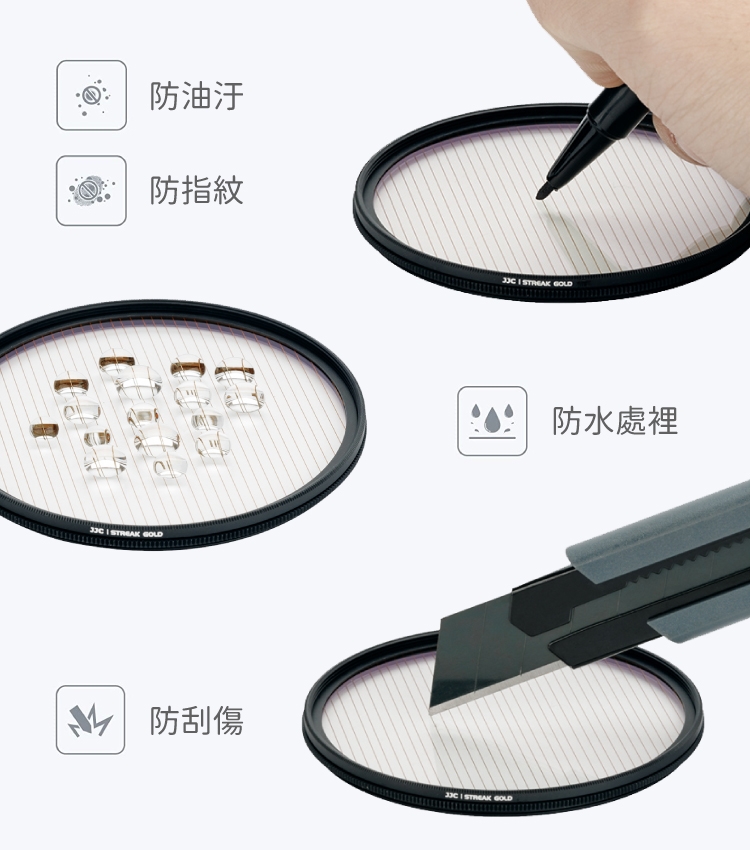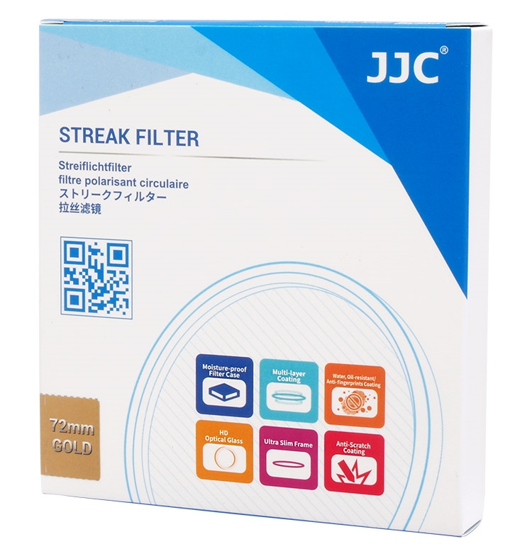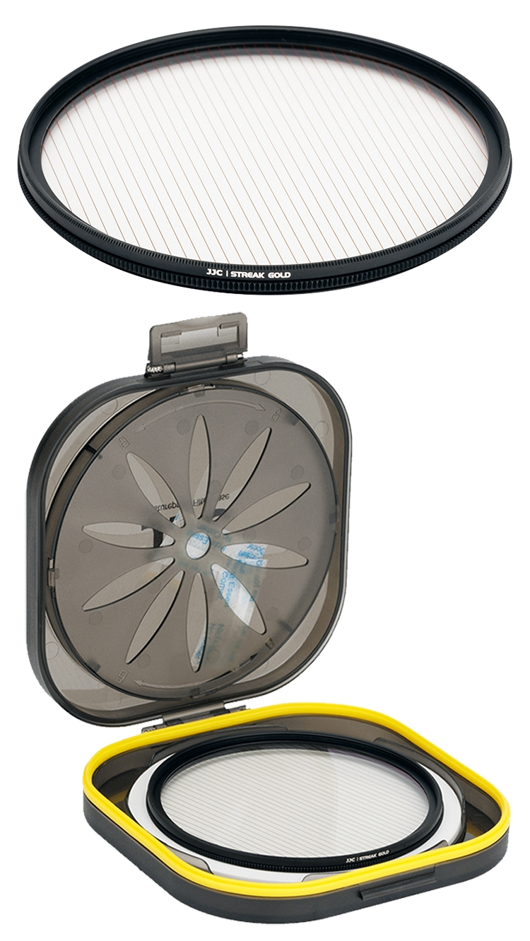 ●【品名】JJC金拉絲1線星芒電影特效濾鏡77mm濾鏡F-GS77暖光暈(附防潮收納盒;14層多層膜/防刮抗汙)金色拉絲耀斑電影濾鏡