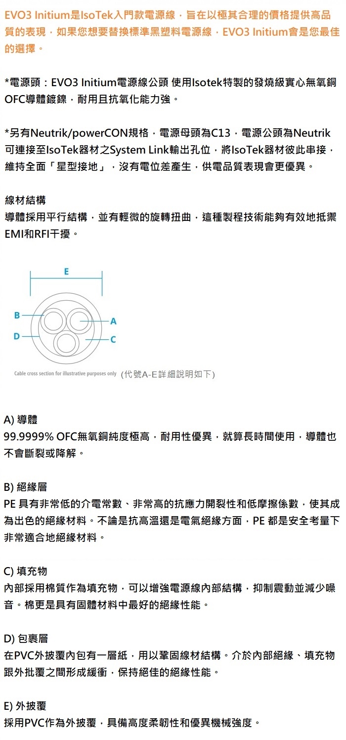IsoTek 英國 EVO3 Initium 發燒級 6N 無氧銅電源線1.5M 公司貨
